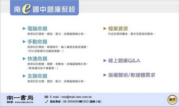 102學年下學期 南一版 國中數學科 題庫命題光碟 繁體中文教學版(DVD一片裝)